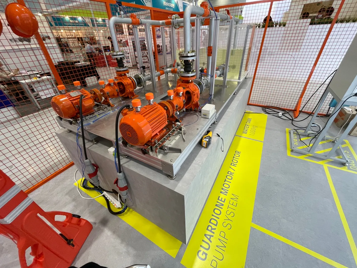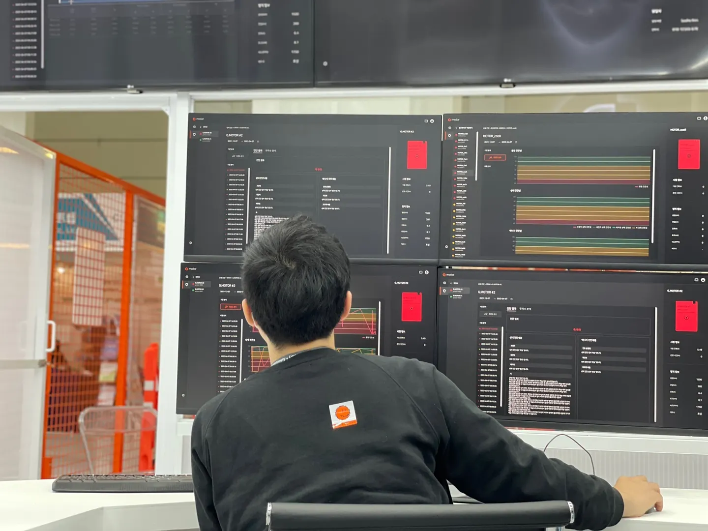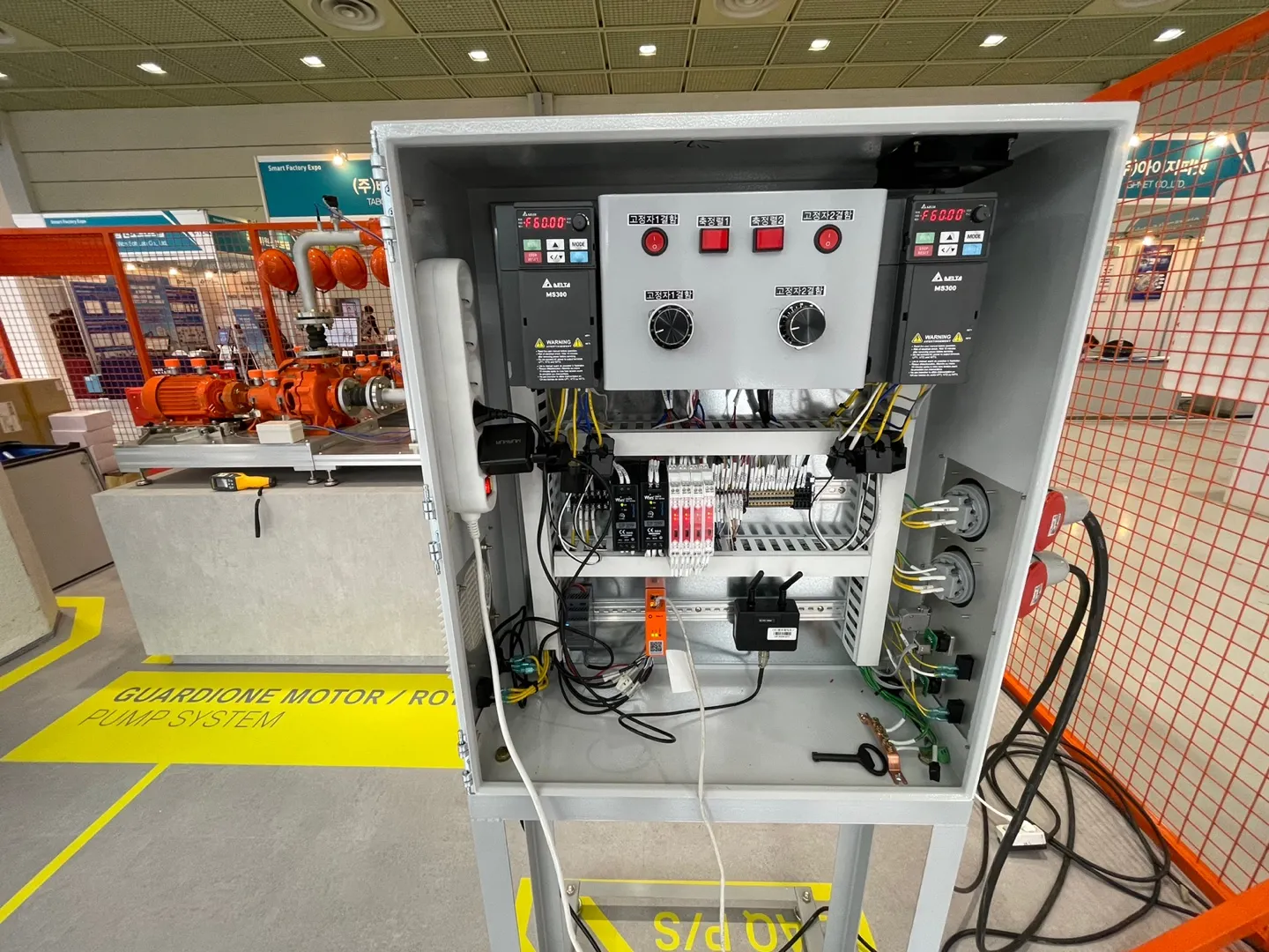 대시보드 모니터들 너머 공간에는 실제로 구동 중인 모터 및 펌프 설비들이 준비되어 있었습니다.