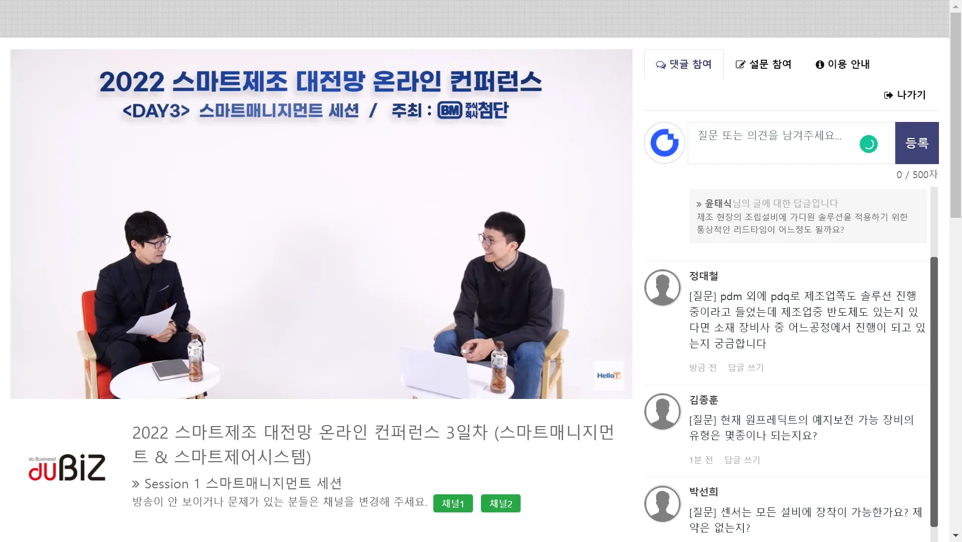 2022 스마트제조 대전망 온라인 컨퍼런스에 연사로 참가했습니다.