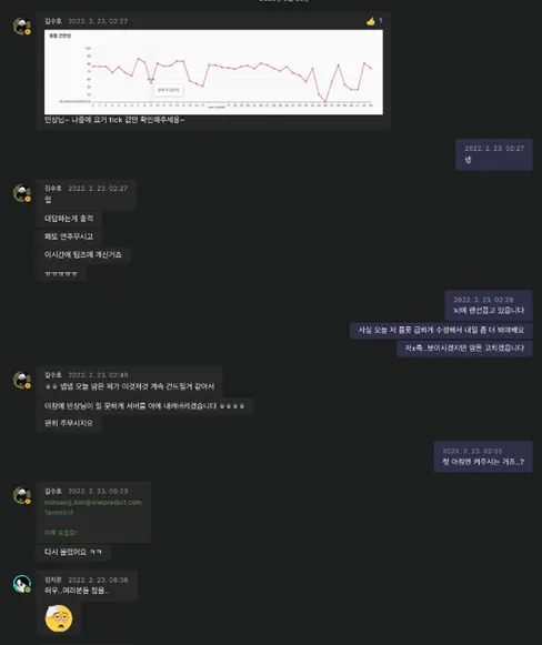 우리 원프레딕트 구성원들은 제품만 더 나은 방향으로 뜯어고치는 게 아니라, 일하는 문화도 이렇게 자발적으로 개선해나가고 있다고요.