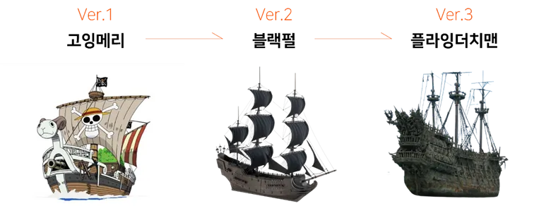 그리고 ‘플라잉더치맨’은 지금 현재 개발이 진행 중인 업그레이드 버전입니다. 영화 <캐리비언의 해적>에 나오는 것처럼 지금보다 더 다양한 기능을 포함할 수 있도록 개발이 진행되고 있답니다. 더불어… 이 해적선은 선원들이 배의 일부로 붙어버리는 게 또 하나의 특징이라, 지금 멤버들이 앞으로 평생 함께 하기를 바라는 염원에서 이 이름을 사용했습니다.
