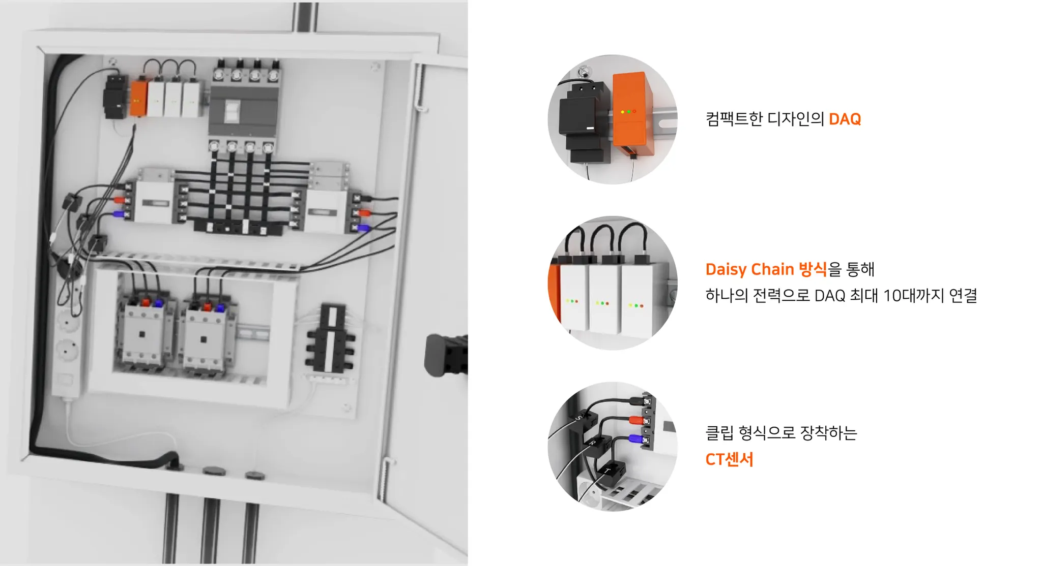 MCC 내부에 설치된 CT센서와 DAQ의 모습