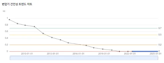 변압기는 특성상 1년에 1~2번 절연유 계측을 진행하고 있어요. 그래서 운용한 지 20년된 변압기라 해도 많아야 40번 내외의 데이터밖에 쌓이지 않아, 대단지 공장이나 대형 플랜트라 해도 변압기에 대한 정보, 특히 고장에 대한 정보가 많지 않은 편이죠. 그래서 변압기 예지보전 영역에서는 데이터 추이와 상관관계를 파악하는 알고리즘의 역할이 더더욱 중요합니다.
